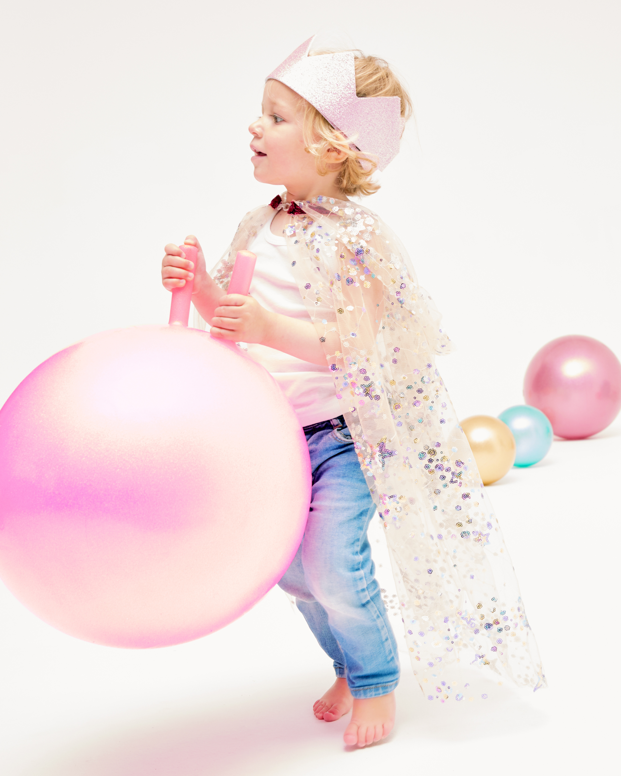 Hey les parents rois et reines de la créativité. Cette cape est le secret ultime pour des heures d’aventures et de fantaisie pour votre petit prince ou princesse ! Fabriquée en tulle et brodée de sequins multicolores, c’est comme une éclaboussure de magie à chaque mouvement !