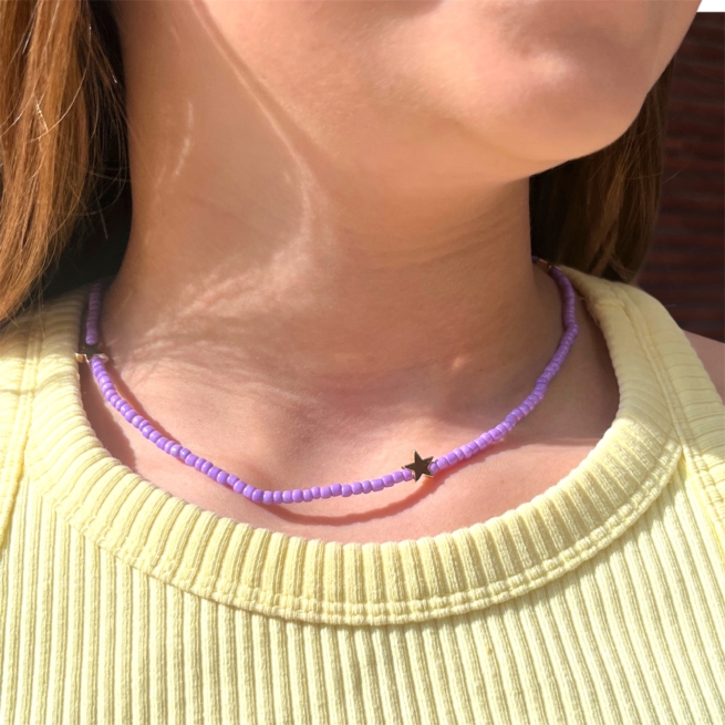 Avec ses perles ultra colorées en rose clair, bleu turquoise et violet + une petite étoile dorée qui brille comme une mini superstar, ce collier a tout bon. C’est l’accessoire qui twiste instantanément n’importe quelle tenue, pour les kids qui aiment que ça claque (sans en faire trop).