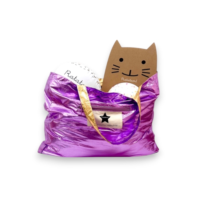 Un vrai fourre tout complètement réversible ! On l’a voulu en taille géante mais stylé et funky à la Ratatam !