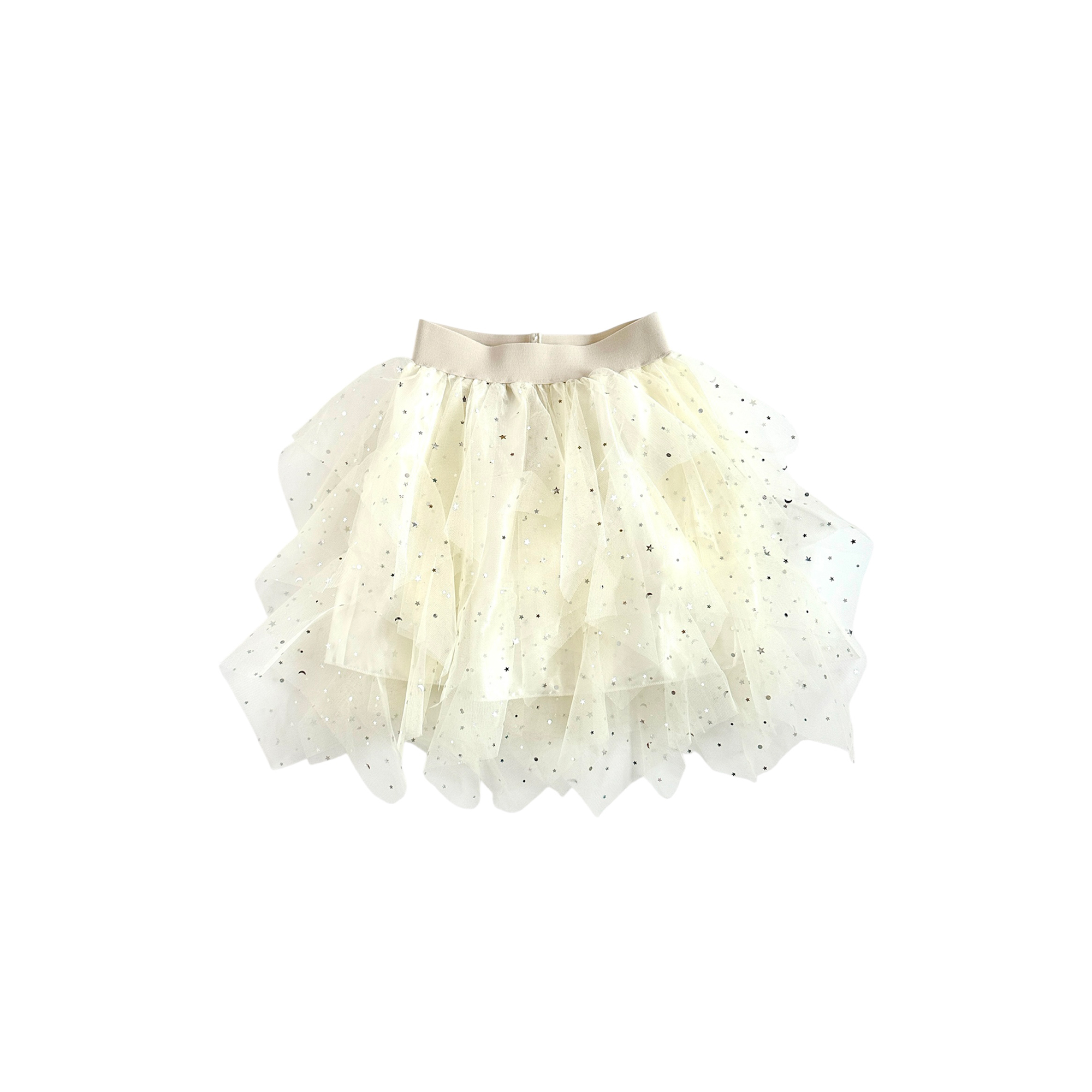 Jupe Mercredi courte étoiles à volants – Beige