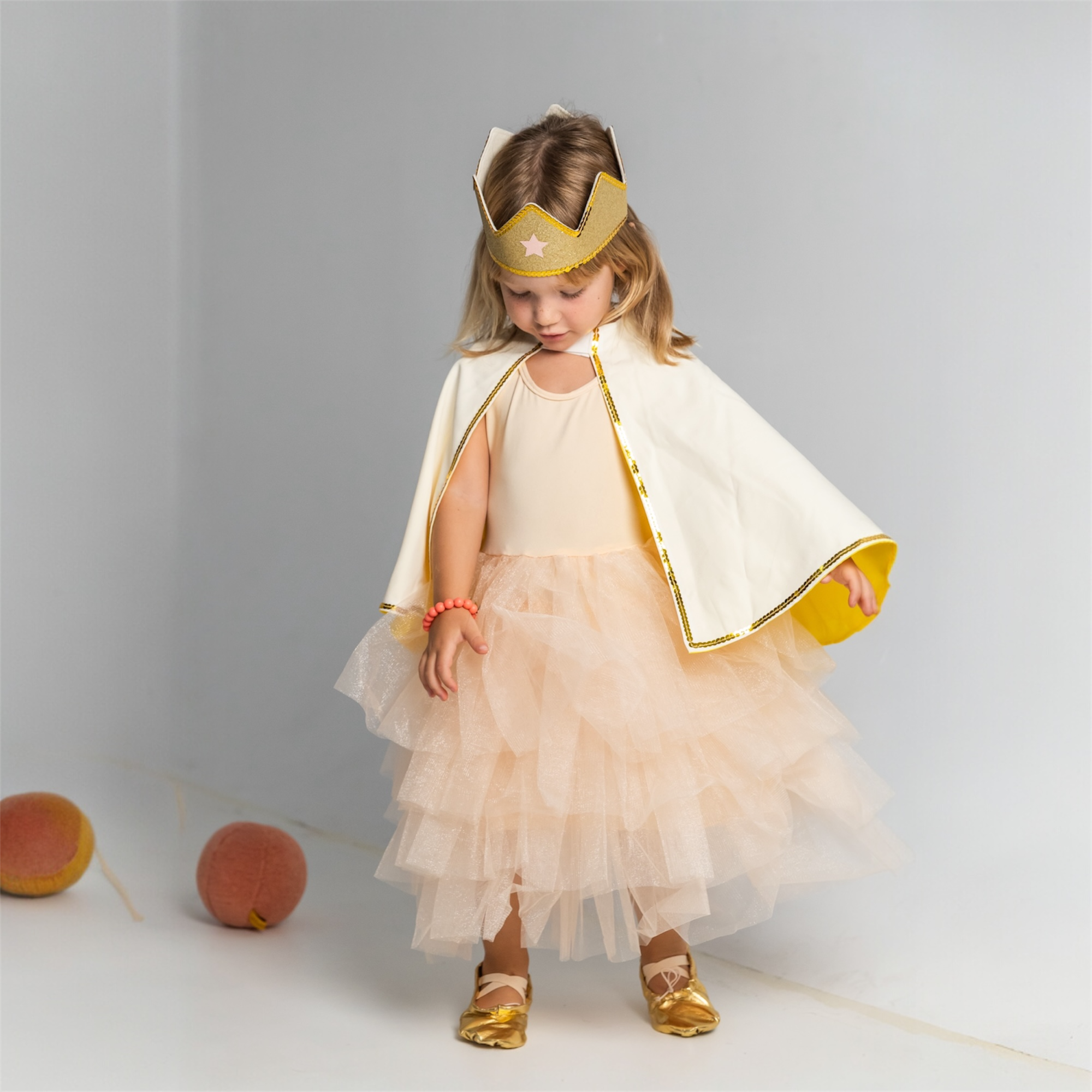 Transformez chaque fête en bal royal avec cet ensemble cape et couronne dorées ! Votre enfant sera prêt·e à briller comme une véritable étoile et à captiver tous les regards.
