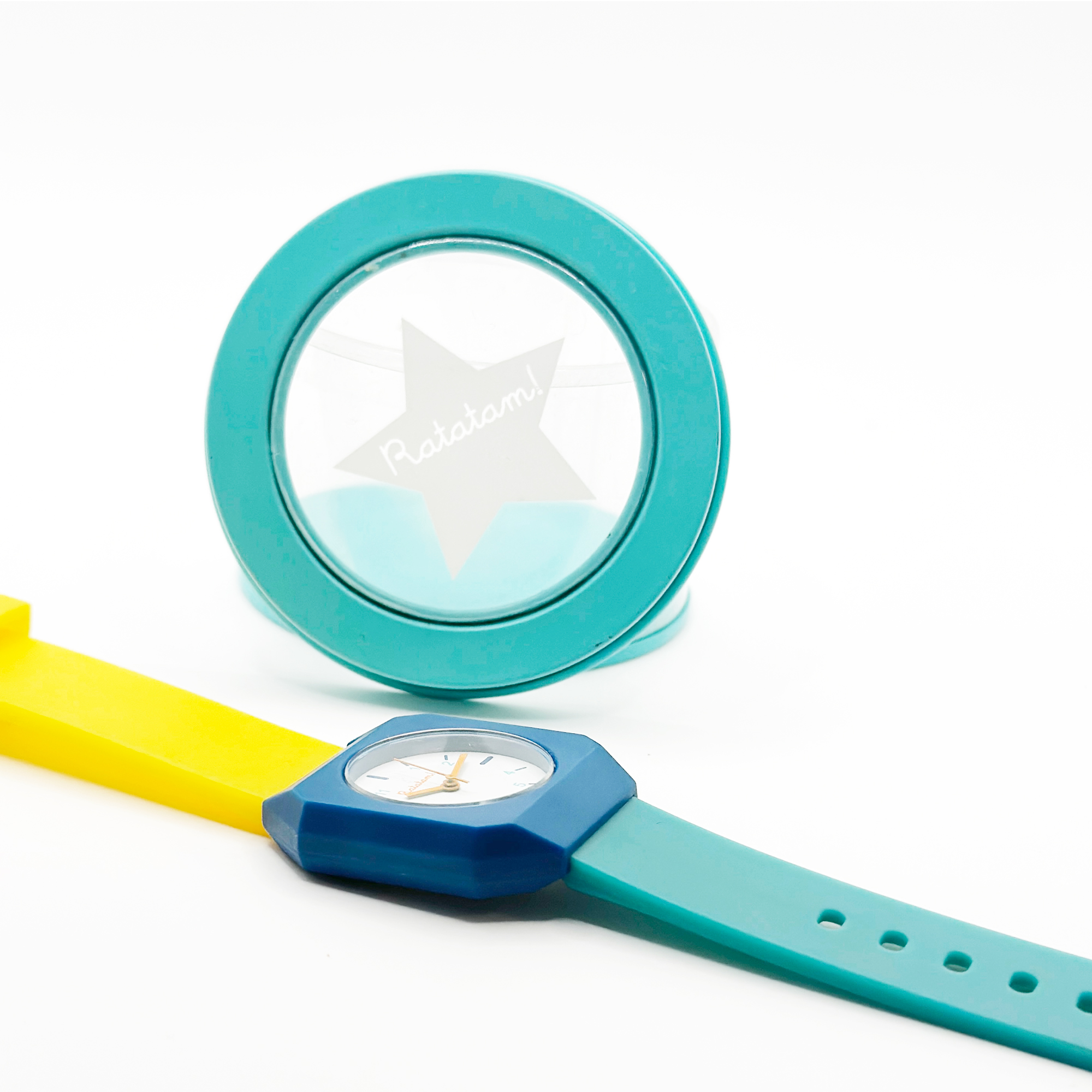 Plongez dans une ambiance old-school pleine de style avec la montre Ratatam Kids, qui transforme l’apprentissage de l’heure en aventure fun.